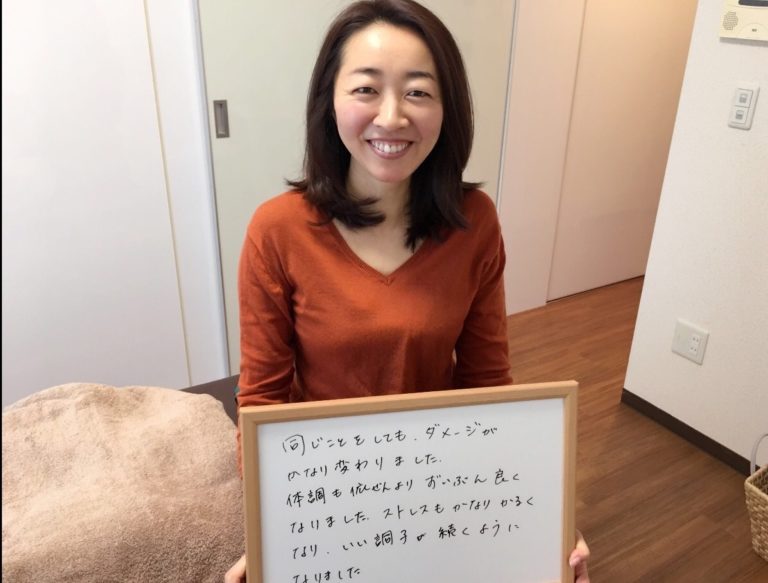 大阪市内からお越しの女性 首・背中の痛みと股関節に痛みでお困りでした